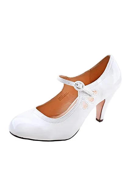 - CLASSIC MARY JANE STYLE: This classic shoe style features a faux suede upper embelished with a laser-cut design in the side panel for an added element of interest.