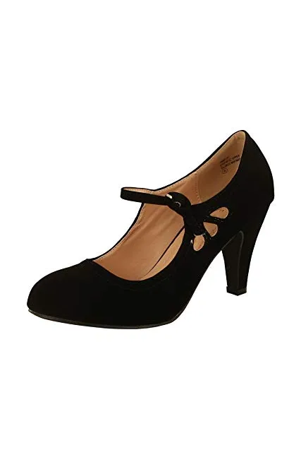 - CLASSIC MARY JANE STYLE: This classic shoe style features a faux suede upper embelished with a laser-cut design in the side panel for an added element of interest.
