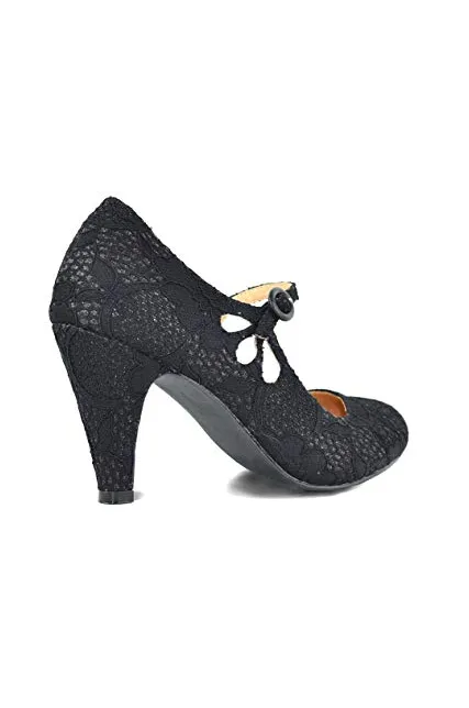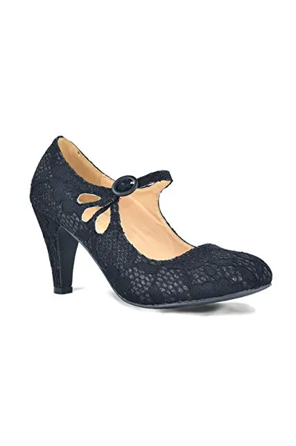 Chase & Chloe Kimmy-21 Women's Round Toe Pierced Mid Heel Mary Jane Style Dress Pumps