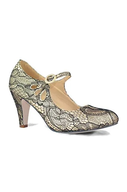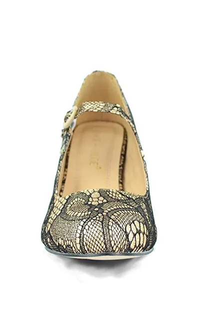 Chase & Chloe Kimmy-21 Women's Round Toe Pierced Mid Heel Mary Jane Style Dress Pumps