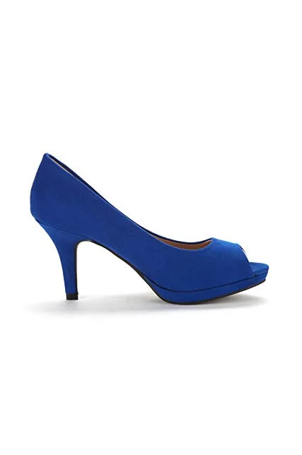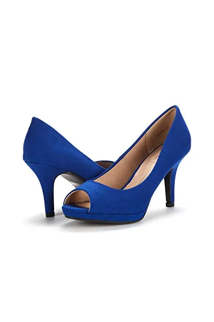 - Slip-on, Round-toe silhouette with peep-toe construction.
