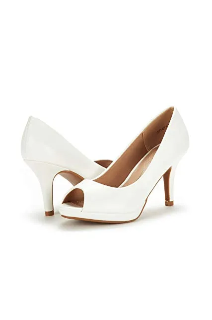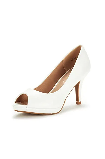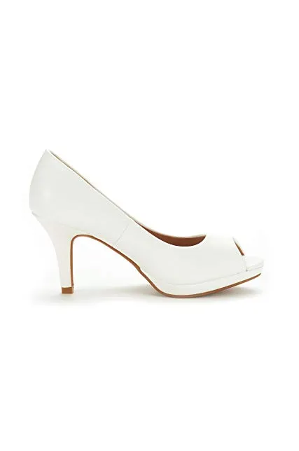 - Slip-on, Round-toe silhouette with peep-toe construction.