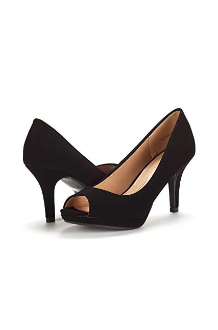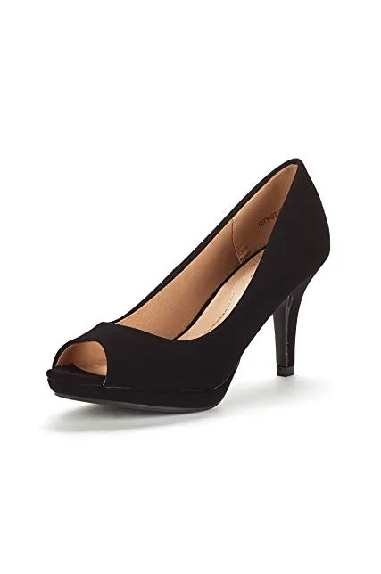 - Slip-on, Round-toe silhouette with peep-toe construction.