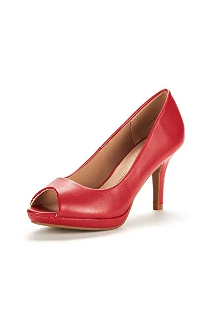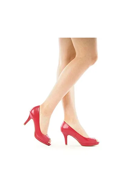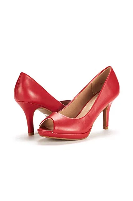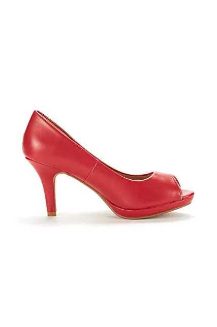 - Slip-on, Round-toe silhouette with peep-toe construction.