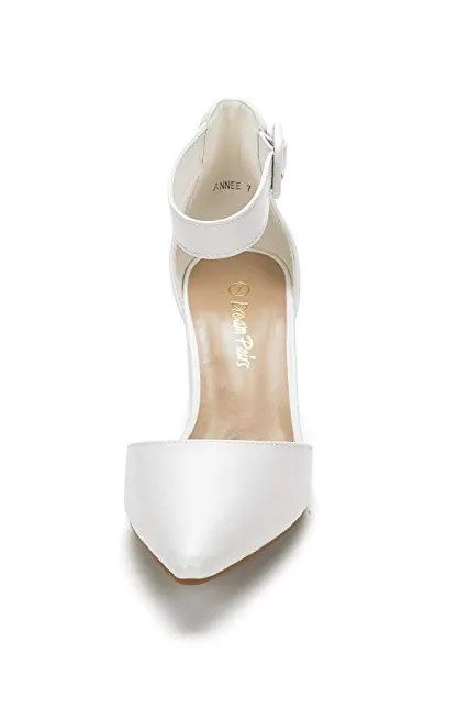 - Ankle strap features an adjustable buckle closure.