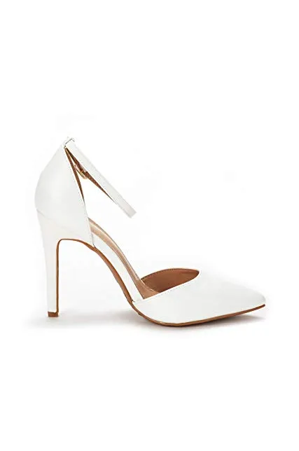 - Wrapped stiletto heel with Adjustable Buckle Closure