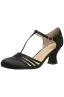 - Vintage 1920's-inspired pump with round toe featuring T-strap design and sculpted heel