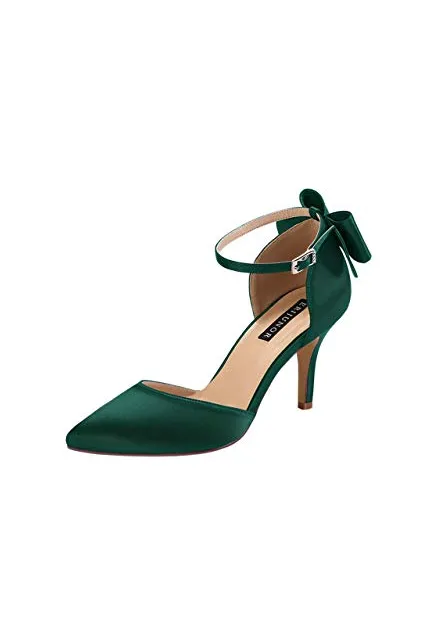 - Feature: Elegant bow knot design with ankle strap ensures a stable walk or dance, comfortable mid heel shoes, Stiletto shoes pointy toe, sexy and fashionable.