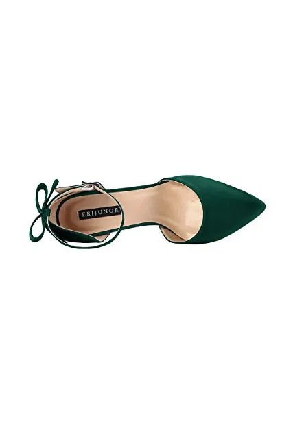 ERIJUNOR Wedding Evening Party Shoes Comfortable Mid Heels Pumps with Bow Knot Ankle Strap Wide Width Satin Shoes
