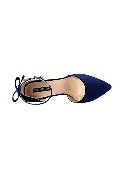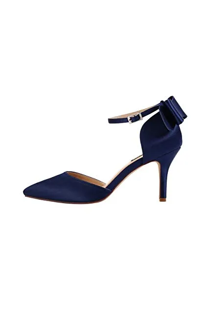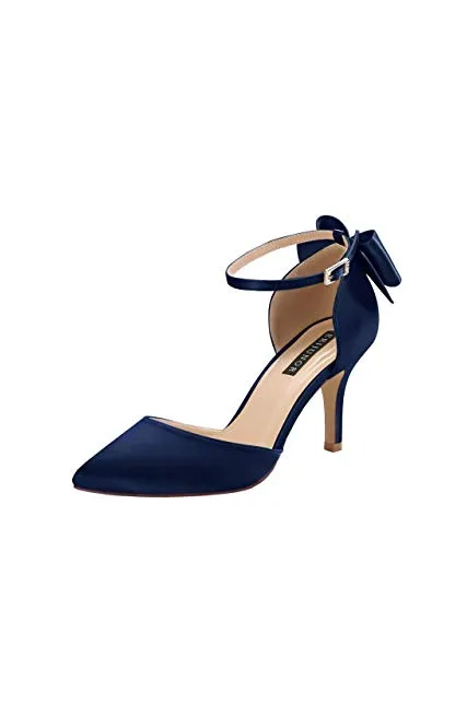 ERIJUNOR Wedding Evening Party Shoes Comfortable Mid Heels Pumps with Bow Knot Ankle Strap Wide Width Satin Shoes