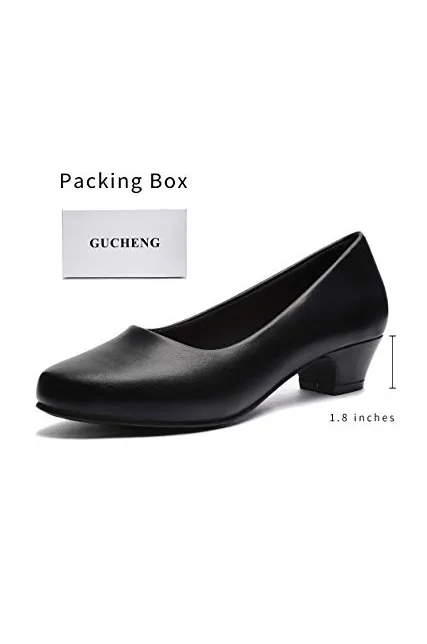 GUCHENG Chunky Heels Pumps Low Shoes Women's - Dress Ladies Heel Comfortable - Formal Width Black Brown White Wedding Shoes