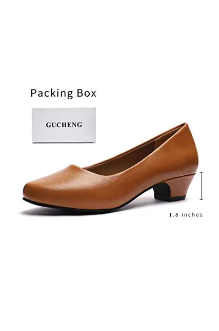 GUCHENG Chunky Heels Pumps Low Shoes Women's - Dress Ladies Heel Comfortable - Formal Width Black Brown White Wedding Shoes
