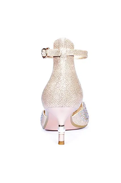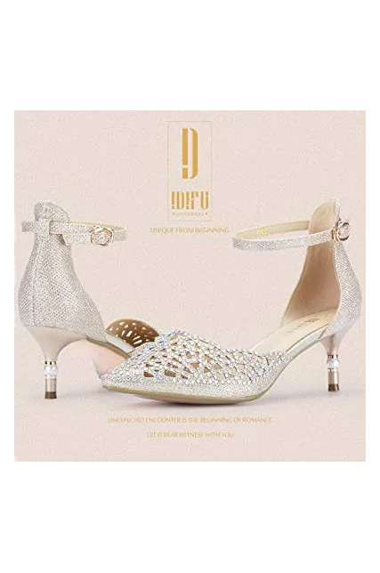 IDIFU Women's IN2 Candice Rhinestones Sequins Mid Heels Stiletto Kitten Heels Wedding Pump Bridal Shoes