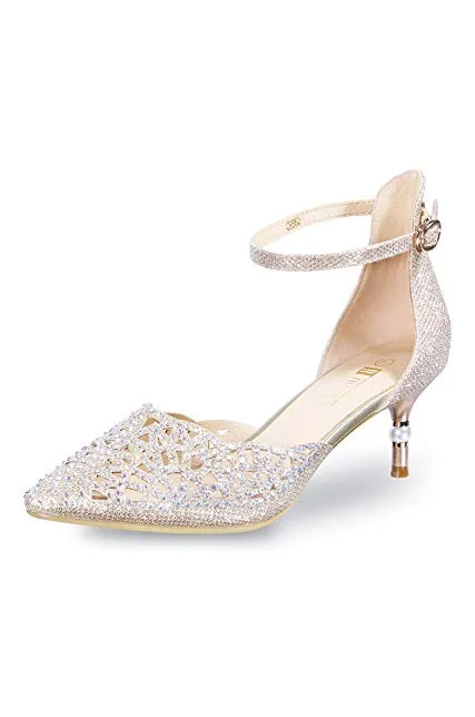 - PRESENT YOUR MYSTERY: These pumps shoes featuring slender silhouette with sexy pointed toe and mid stiletto heels are special in their shining sequins and rhinestones. Their major difference lies in the hollow out design. You will be pleased with these gorgeous pumps to show yourself.