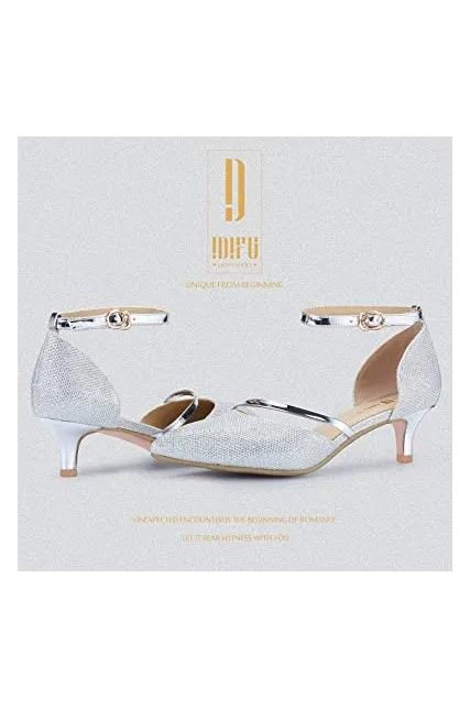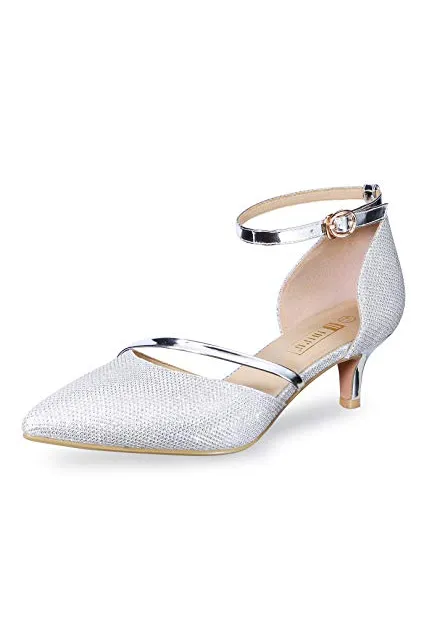 - DELICATE AND GORGEOUS DESIGN: These pumps shoes feature glitter sequins, closed pointed toe and mid kitten heels, which are made with the fashion elements. The humanistic ankle strap are easily adjusted to match with your size. They are strongly suitable for your dresses.