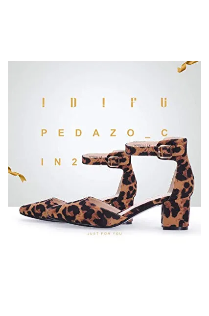 IDIFU Women's IN2 Pedazo-C Mid Chunky Heels Closed Pointed Toe Ankle Strap D'Orsay Pumps Low Block Heel Comfortable Dress Sandals Shoes