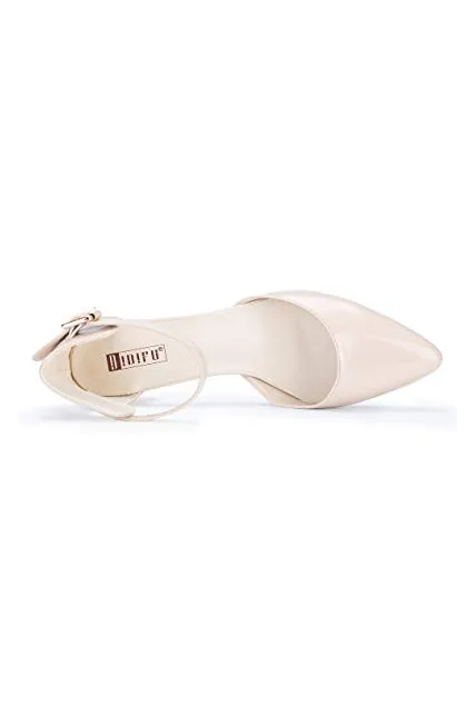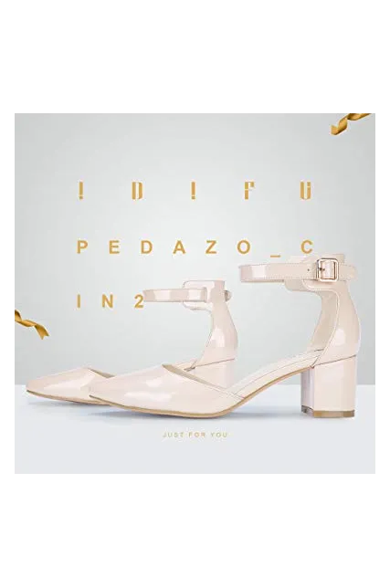 IDIFU Women's IN2 Pedazo-C Mid Chunky Heels Closed Pointed Toe Ankle Strap D'Orsay Pumps Low Block Heel Comfortable Dress Sandals Shoes