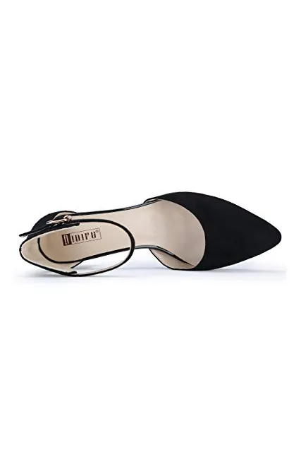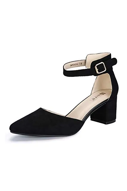 - SIMPLE BUT DELICATE TREND: These D'Orsay pumps with chunky heels are suitable to wear for a really special occasion. The ankle strap and pointed toe will help you get in on two trends at once.