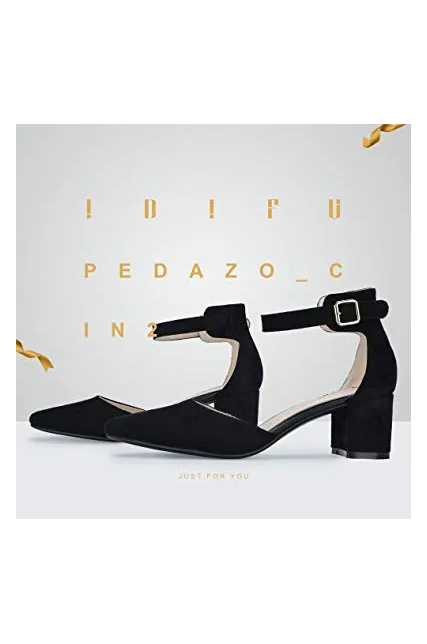 IDIFU Women's IN2 Pedazo-C Mid Chunky Heels Closed Pointed Toe Ankle Strap D'Orsay Pumps Low Block Heel Comfortable Dress Sandals Shoes