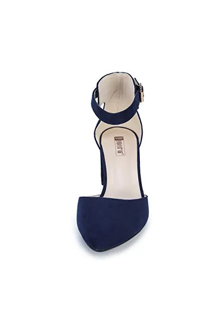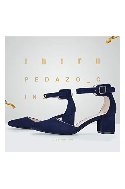 IDIFU Women's IN2 Pedazo-C Mid Chunky Heels Closed Pointed Toe Ankle Strap D'Orsay Pumps Low Block Heel Comfortable Dress Sandals Shoes