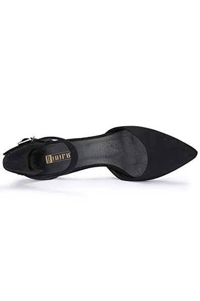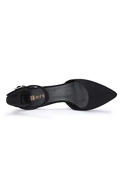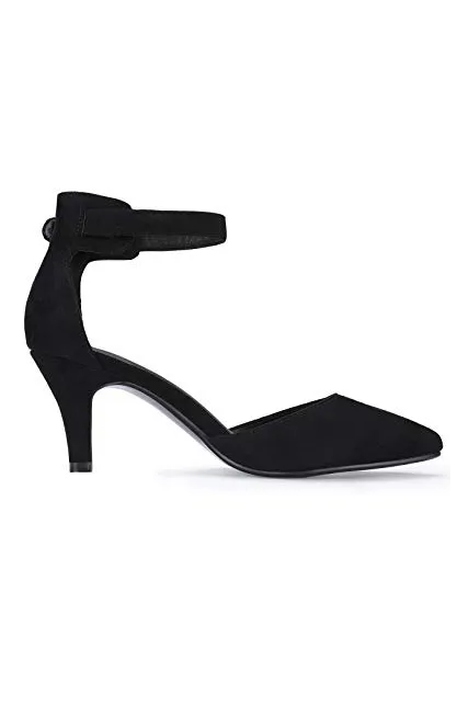 IDIFU Women's IN3 D'Orsay Pointed Toe Ankle Strap Mid Heel Low Kitten Dress Pump Shoes
