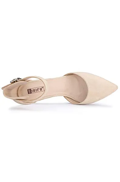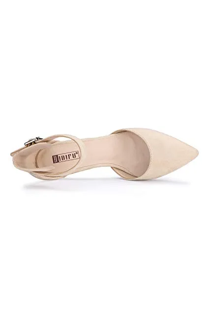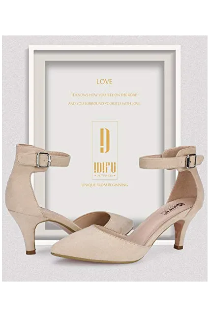 IDIFU Women's IN3 D'Orsay Pointed Toe Ankle Strap Mid Heel Low Kitten Dress Pump Shoes