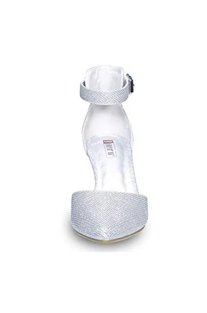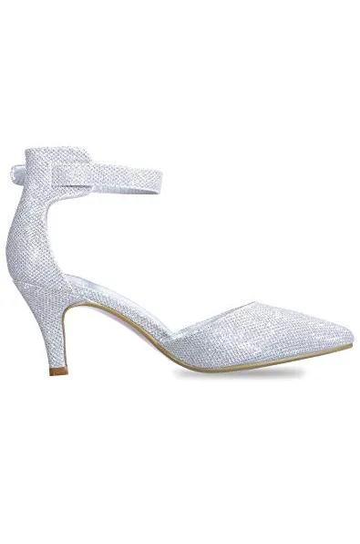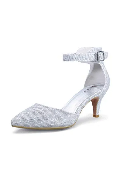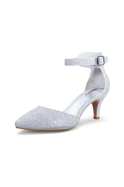 IDIFU Women's IN3 D'Orsay Pointed Toe Ankle Strap Mid Heel Low Kitten Dress Pump Shoes