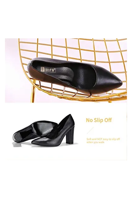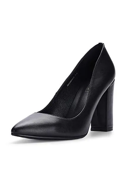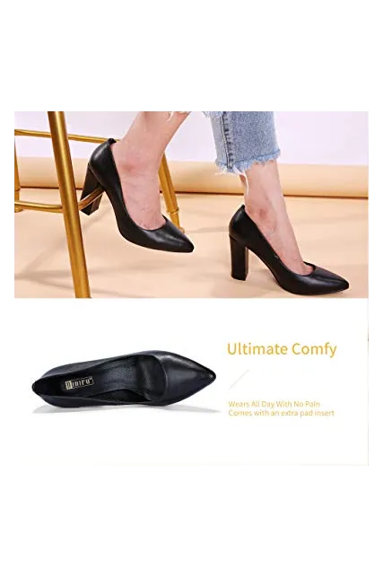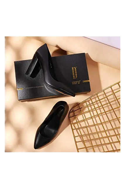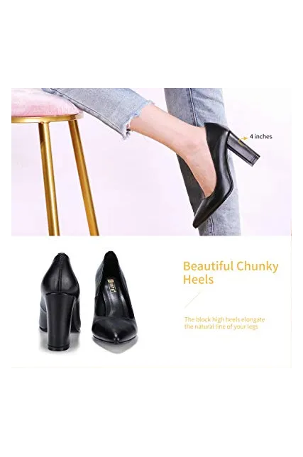 - SLIMMER PHYSIQUE: These pumps featuring slender silhouette with sexy pointed toe and high chunky heels give you a few inches boost to your frame and elongate your legs for elegance with every step.