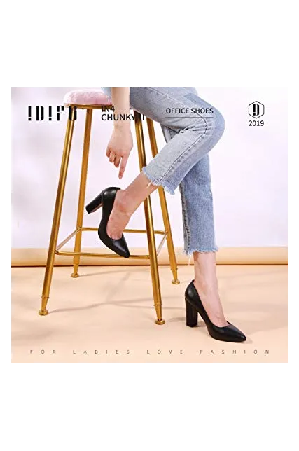 IDIFU Women's IN4 Chunky-HI Classic Closed Pointed Toe Pumps High Chunky Block Heels Dress Office Shoes
