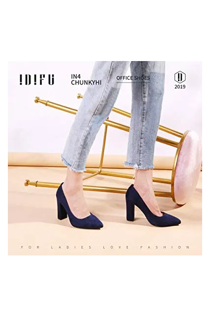IDIFU Women's IN4 Chunky-HI Classic Closed Pointed Toe Pumps High Chunky Block Heels Dress Office Shoes