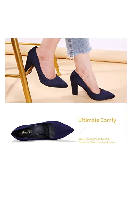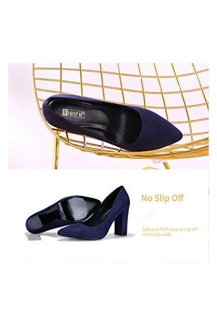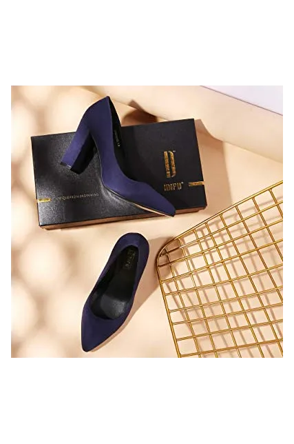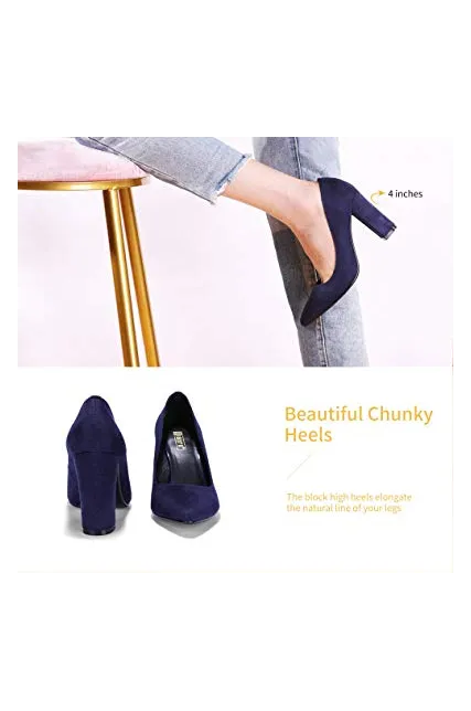 - SLIMMER PHYSIQUE: These pumps featuring slender silhouette with sexy pointed toe and high chunky heels give you a few inches boost to your frame and elongate your legs for elegance with every step.
