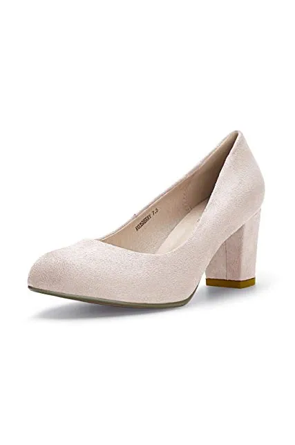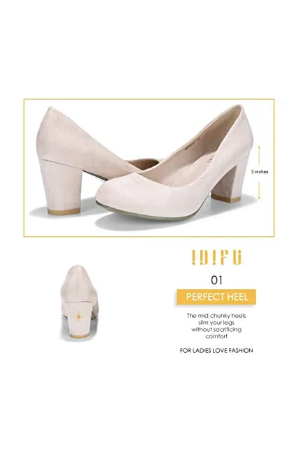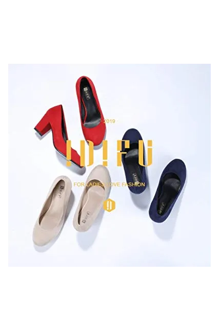 - SLIMMER PHYSIQUE: These pumps featuring classic silhouette with rounded toe and mid chunky heels give you a few inches boost to your frame and elongate your legs for elegance with every step