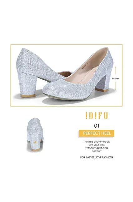 - SLIMMER PHYSIQUE: These pumps featuring classic silhouette with rounded toe and mid chunky heels give you a few inches boost to your frame and elongate your legs for elegance with every step
