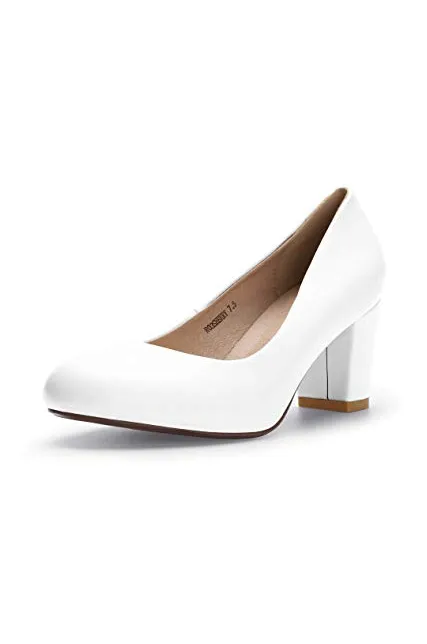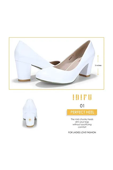 - SLIMMER PHYSIQUE: These pumps featuring classic silhouette with rounded toe and mid chunky heels give you a few inches boost to your frame and elongate your legs for elegance with every step