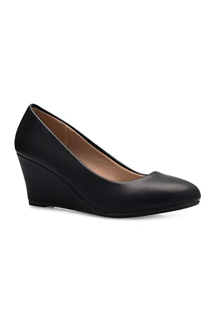 OLIVIA K Women's Adorable Low Wedge Heel Shoe - Easy Low Pumps - Basic Slip On, Comfort