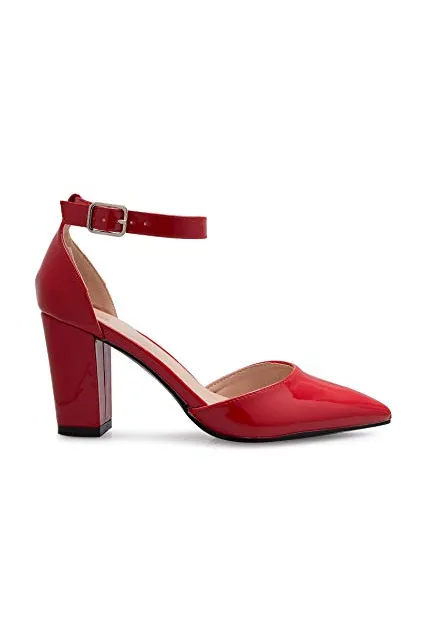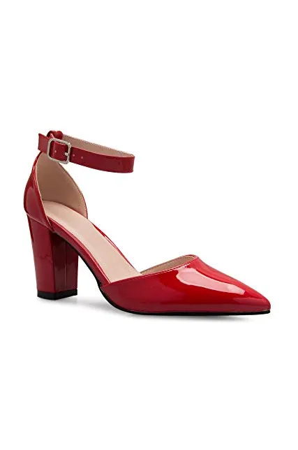 OLIVIA K Women's Sexy D'Orsay Ankle Strap Pointed Toe Block Heel Pump - Classic, Comfortable