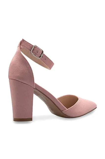 OLIVIA K Women's Sexy D'Orsay Ankle Strap Pointed Toe Block Heel Pump - Classic, Comfortable