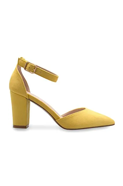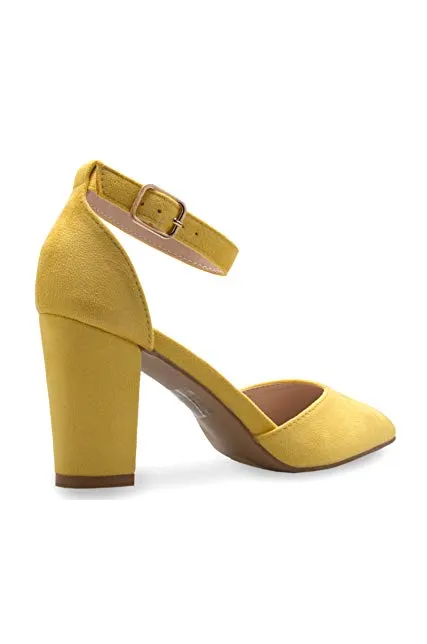 OLIVIA K Women's Sexy D'Orsay Ankle Strap Pointed Toe Block Heel Pump - Classic, Comfortable