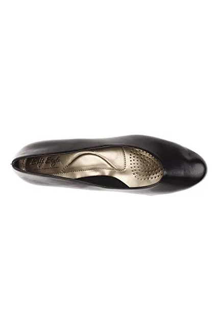 - Low-heel pump with rolled topline