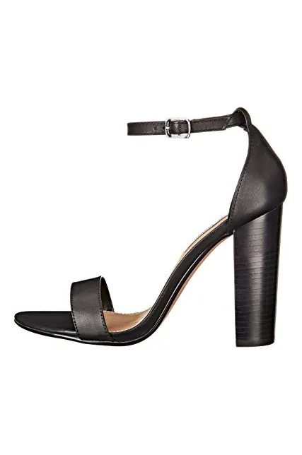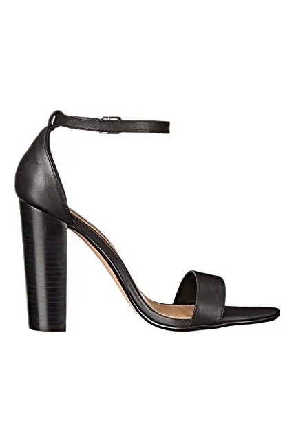 - Ankle-strap sandal in rich leather featuring covered block heel and single toe strap