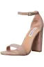 - Ankle-strap sandal in rich leather featuring covered block heel and single toe strap