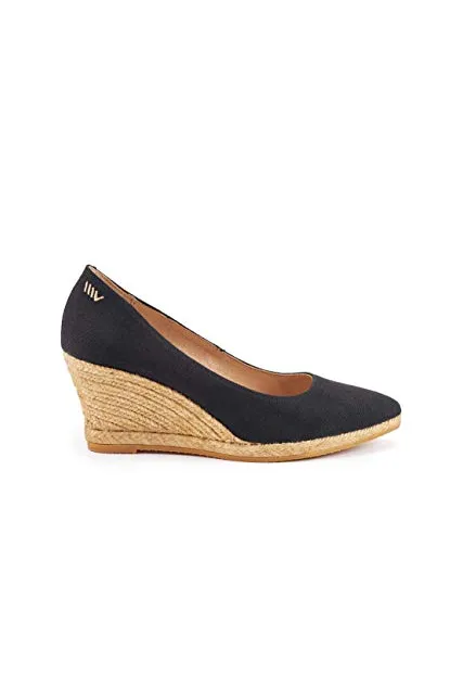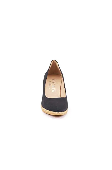 VISCATA Handmade in Spain Roses 2.75-inch Elegant Style, Soft Canvas, Slip-on Wedge Pump, Espadrilles Heel