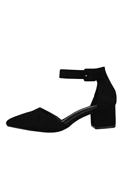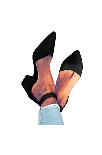 - Features: Chunky Low Heel, Scalloped Strap, Ankle Buckle, Pointed Toe, Cut out, D'orsay Shoes for Women.