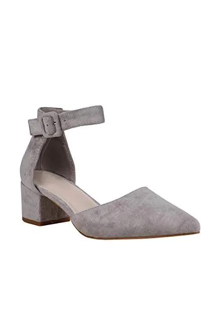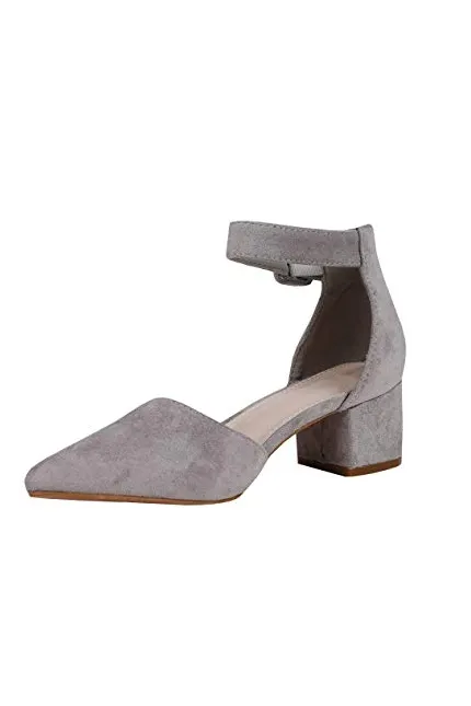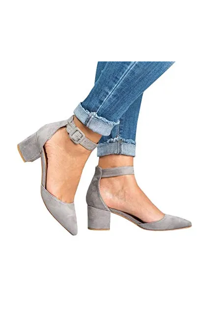- Features: Chunky Low Heel, Scalloped Strap, Ankle Buckle, Pointed Toe, Cut out, D'orsay Shoes for Women.