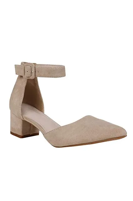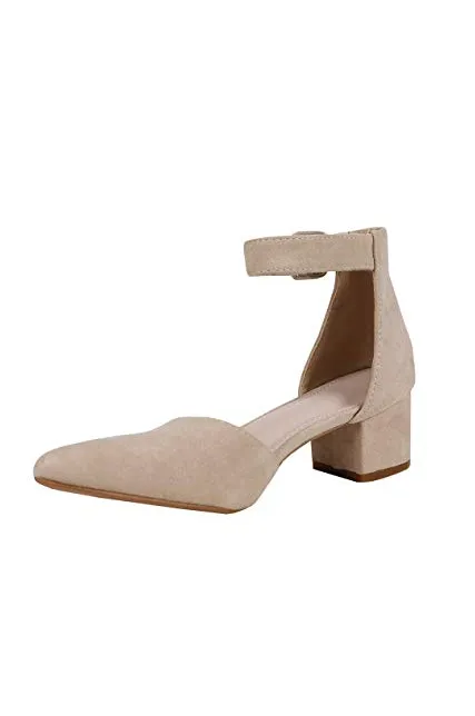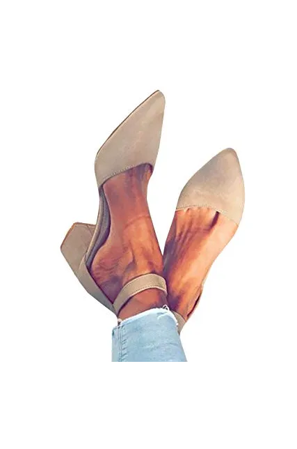 - Features: Chunky Low Heel, Scalloped Strap, Ankle Buckle, Pointed Toe, Cut out, D'orsay Shoes for Women.
