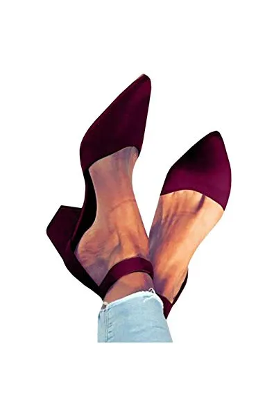 - Features: Chunky Low Heel, Scalloped Strap, Ankle Buckle, Pointed Toe, Cut out, D'orsay Shoes for Women.